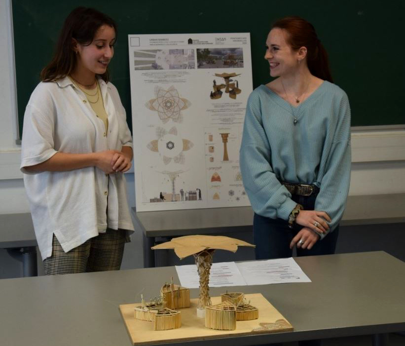 Le bambou étant une plante invasive, s'adaptant parfaitement au climat méditerranéen, nous en trouvons à foison dans tout le territoire montpelliérain. Nous avons voulu revaloriser ce dêchet organique qui possède de bonnes performances mécaniques et physiques.