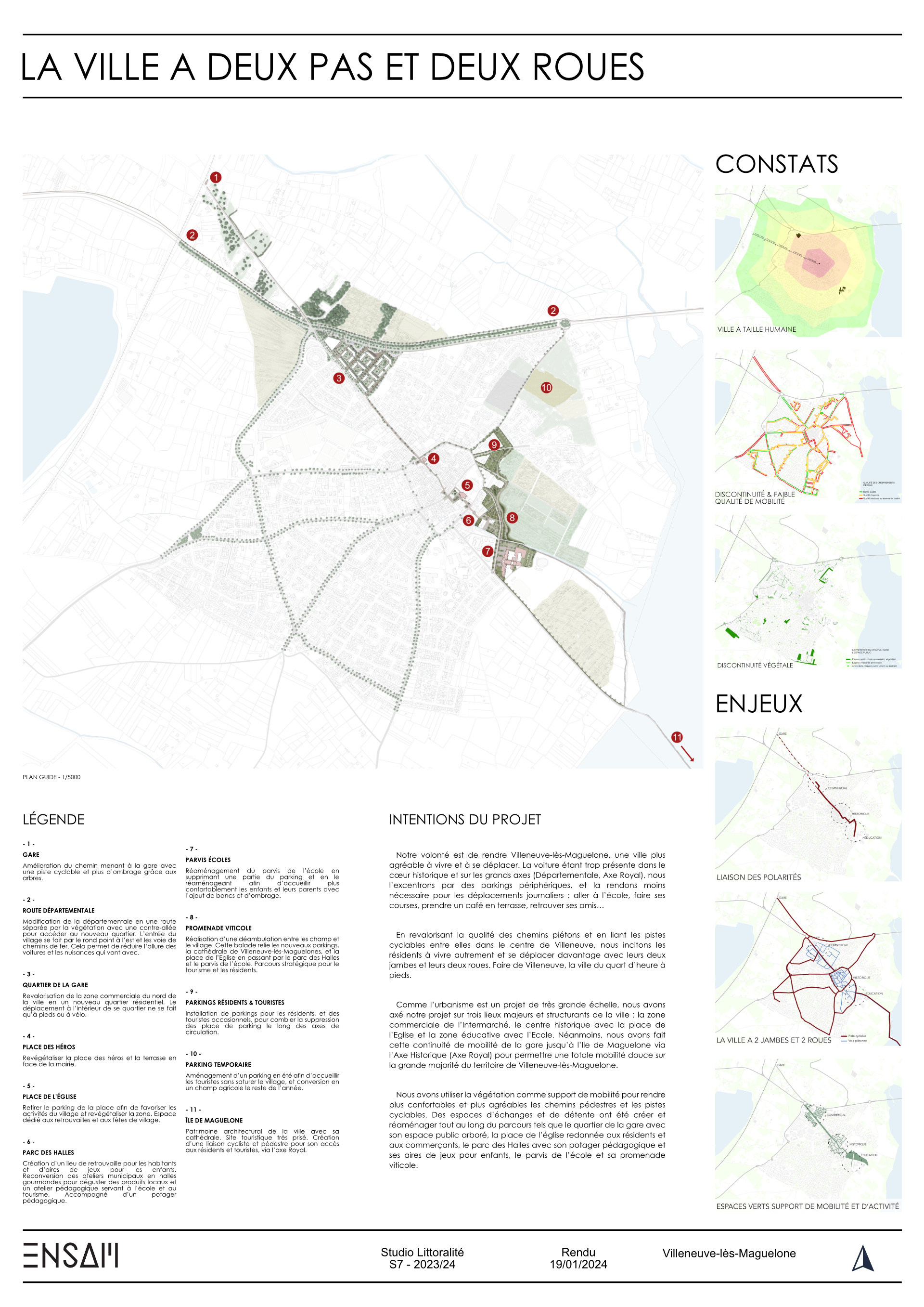 Villeneuve-lès-Maguelone est un village de bord de mer et à proximité de Montpellier. Il bénéficie du cadre méditerranéen, mais subit les contraintes de littoralité : inondation, salinité des sols, embruns. Villeneuve se situant près de la métropole profite de son attractivité mais, en contre-partie, devient ville-dortoir où la voiture est omniprésente.