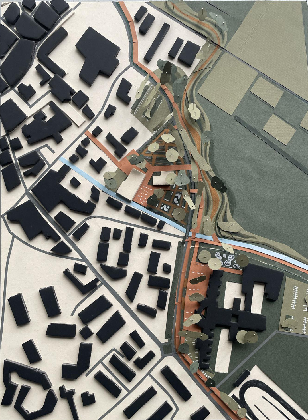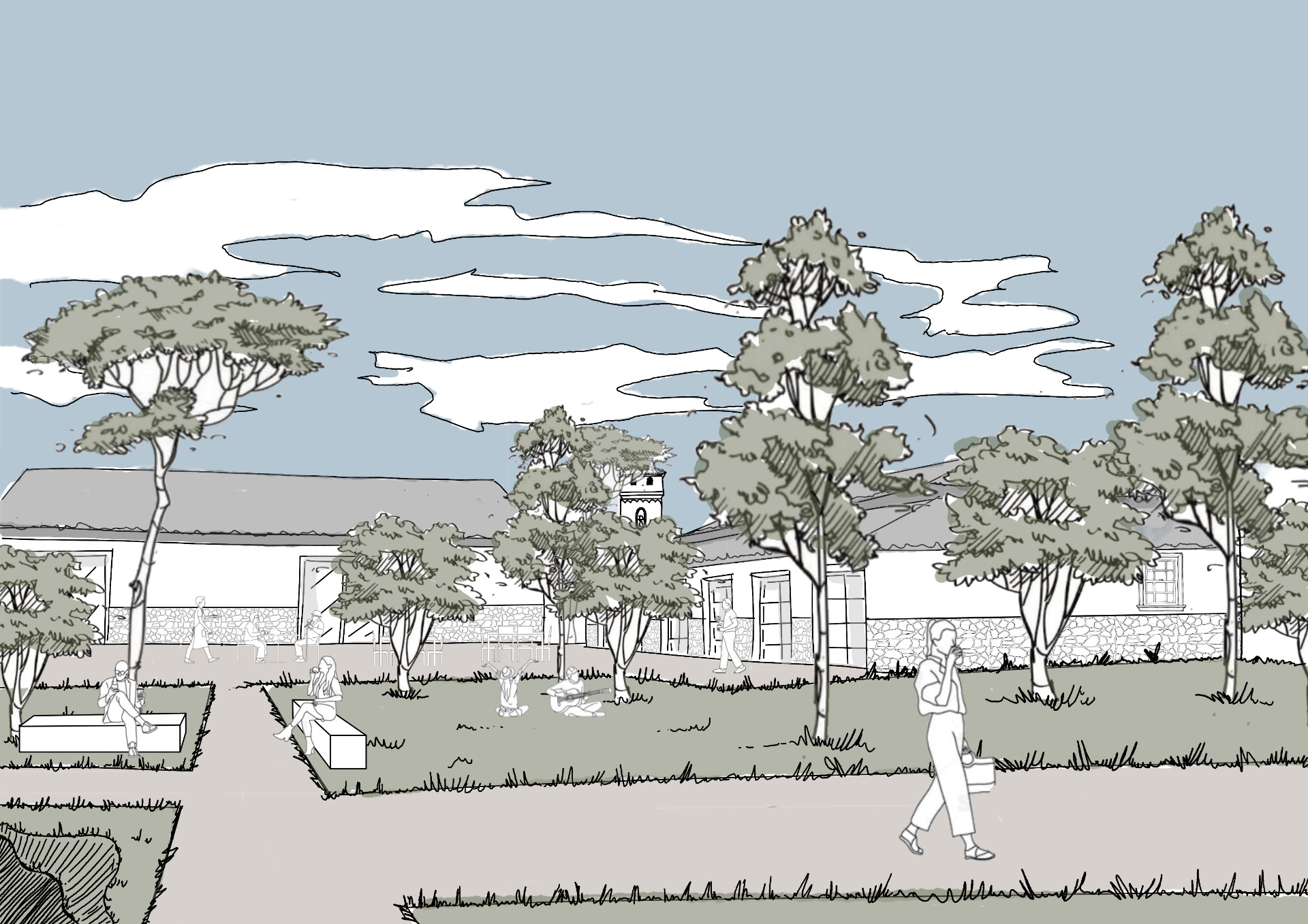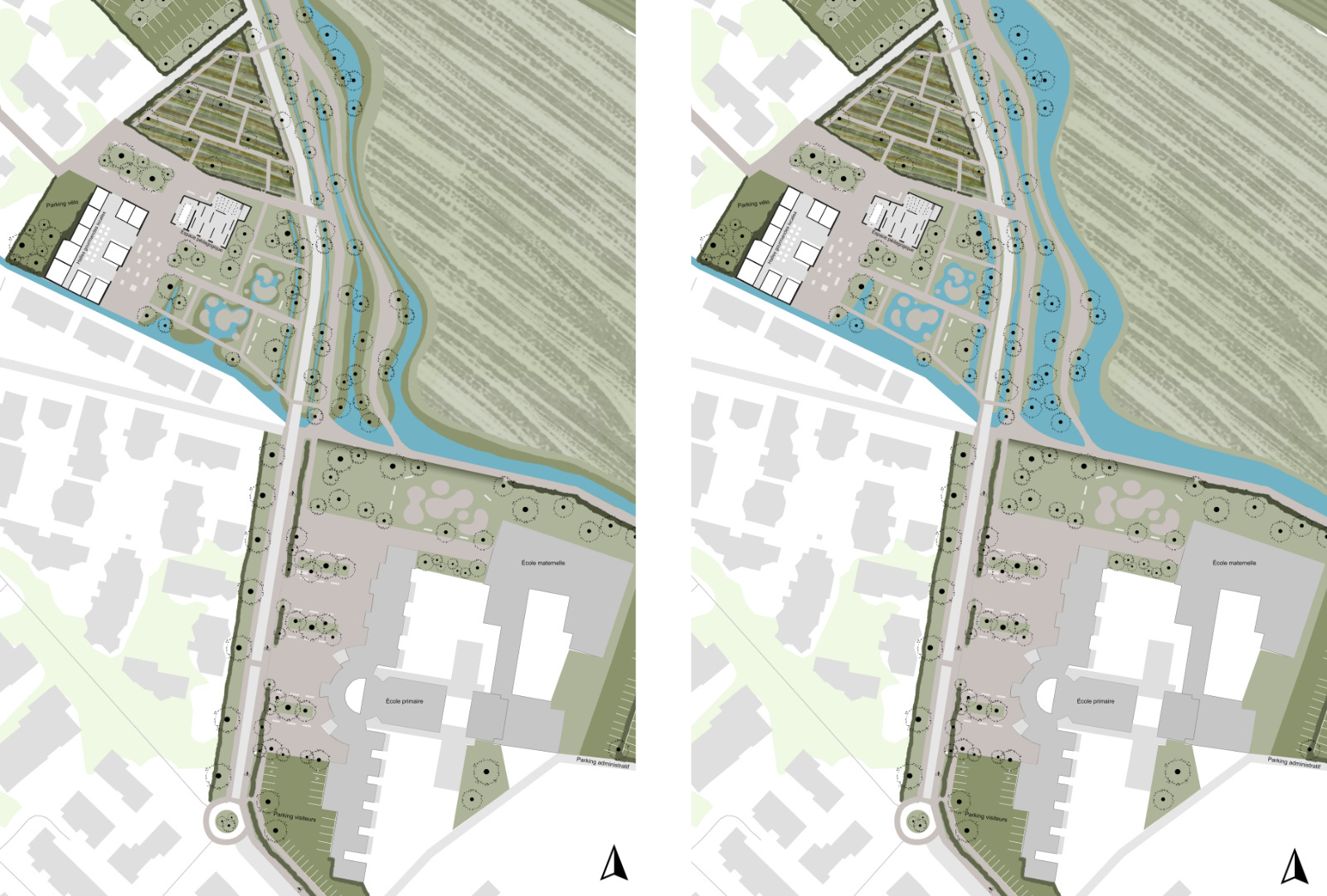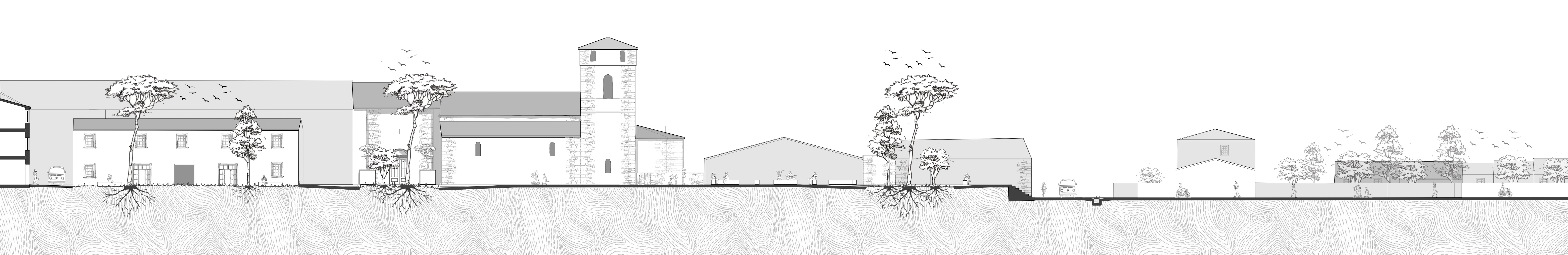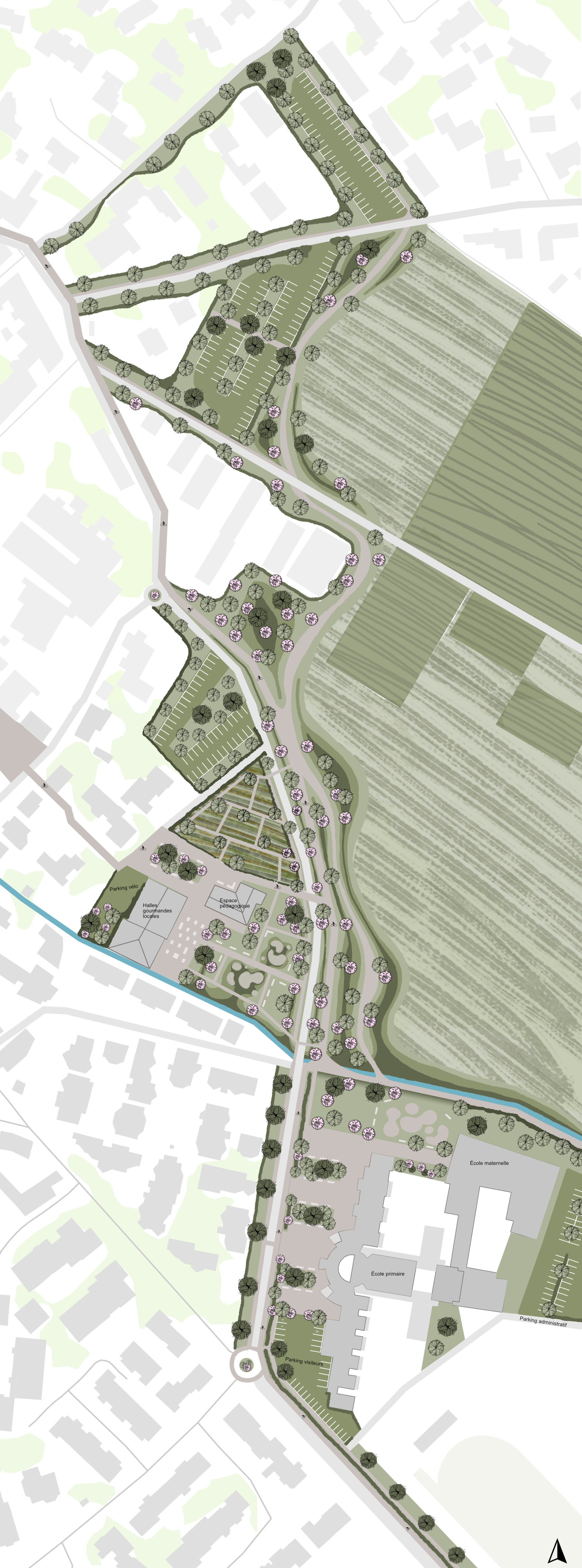 Notre volonté était de redynamiser l'espace public de ce village pour le rendre plus agréable à vivre. En réaménageant le parvis de l'école pour l'accueil des parents, en reconvertissant les ateliers municipaux en halles gourmandes avec leurs parcs et leur potager pédagogique. Et en revalorisant les accès piétons et cyclistes pour les rendre confortables et agrèables à utiliser au quotidien. Afin d'inciter les habitants à davantage utiliser le vélo ou la marche pour se déplacer.
