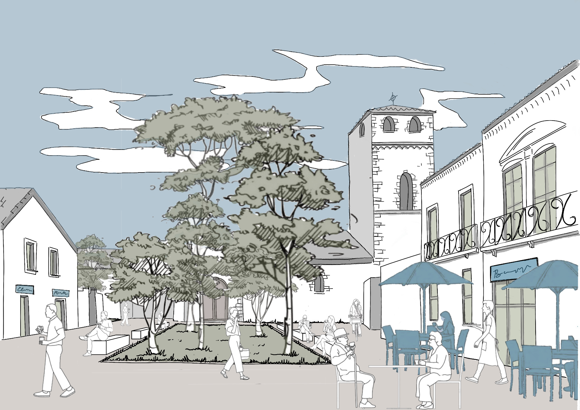 La voiture a pris une place importante dans le centre historique. Nous avions voulu rendre la place de l'église aux résidents et aux commerçants. En y installant des espaces végétalisés avec de l'ombre et des bancs; en revalorisant les terrasses; et en créant des accès simples et sécurisés pour les piétons et les cyclistes. Nous avons offert aux habitants un nouvel espace de partage et de rencontres, où il fera bon vivre une grande partie de l'année.