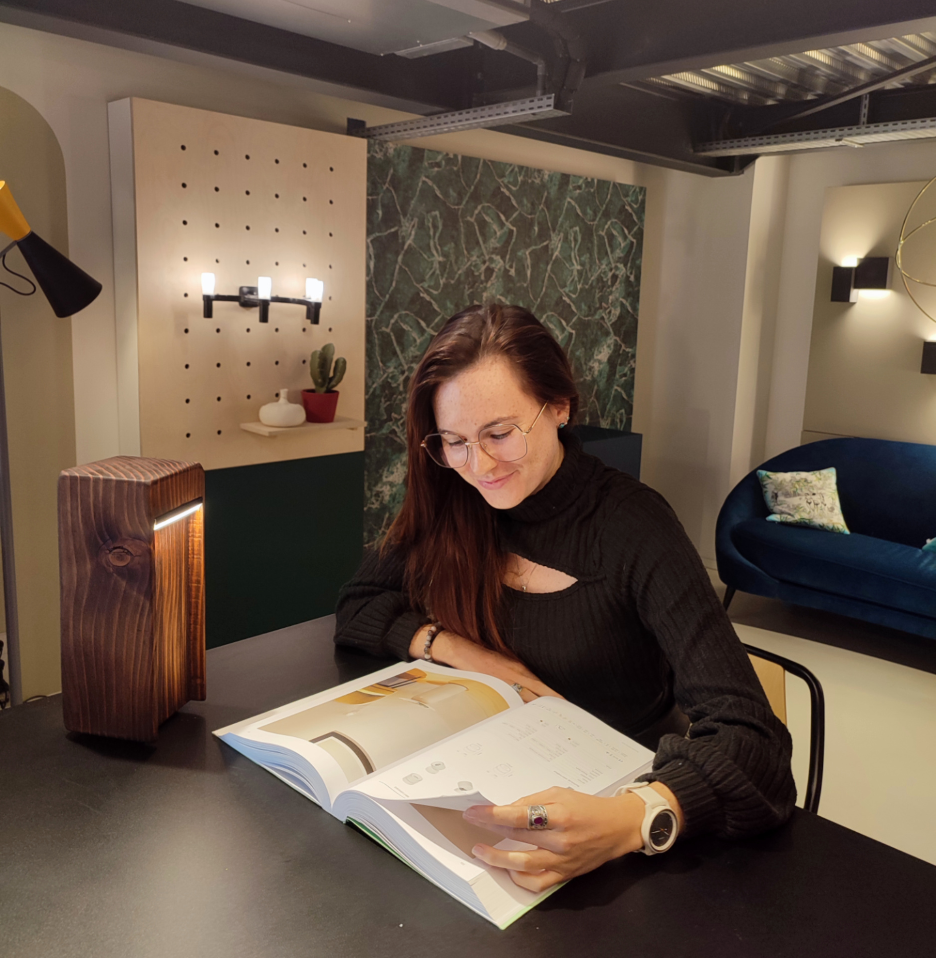 Design de la lampe, sous les conseils de Nathalie Dewez, architecte