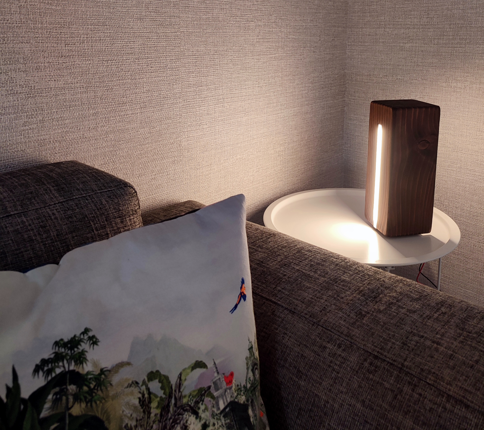 Eclairage : deux bandes LED de 12V, blanc chaud. En collaboration avec Portal